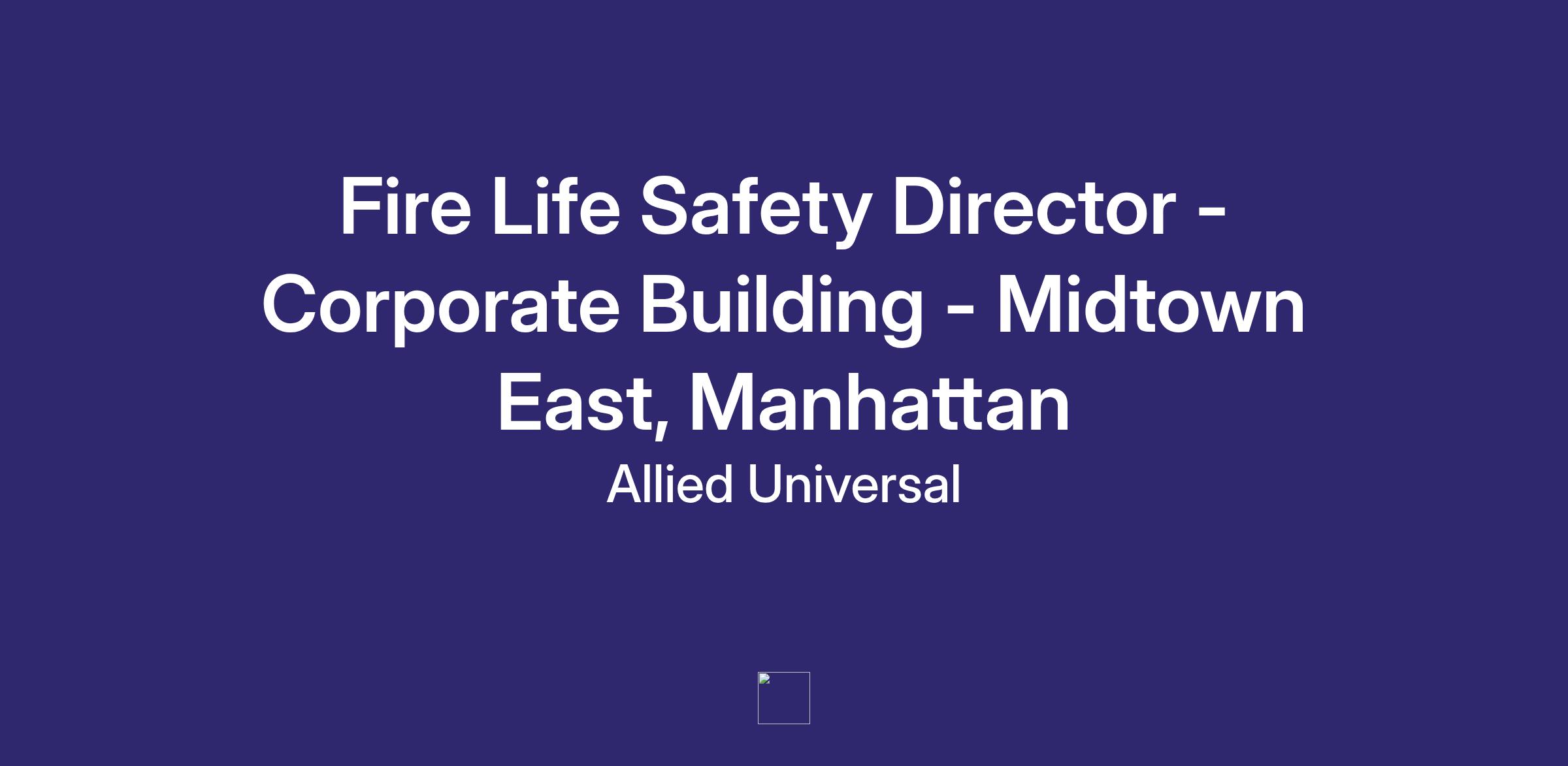 Allied Universal is hiring a Fire Life Safety Director to oversee a Corporate Building located in Midtown East, Manhattan.