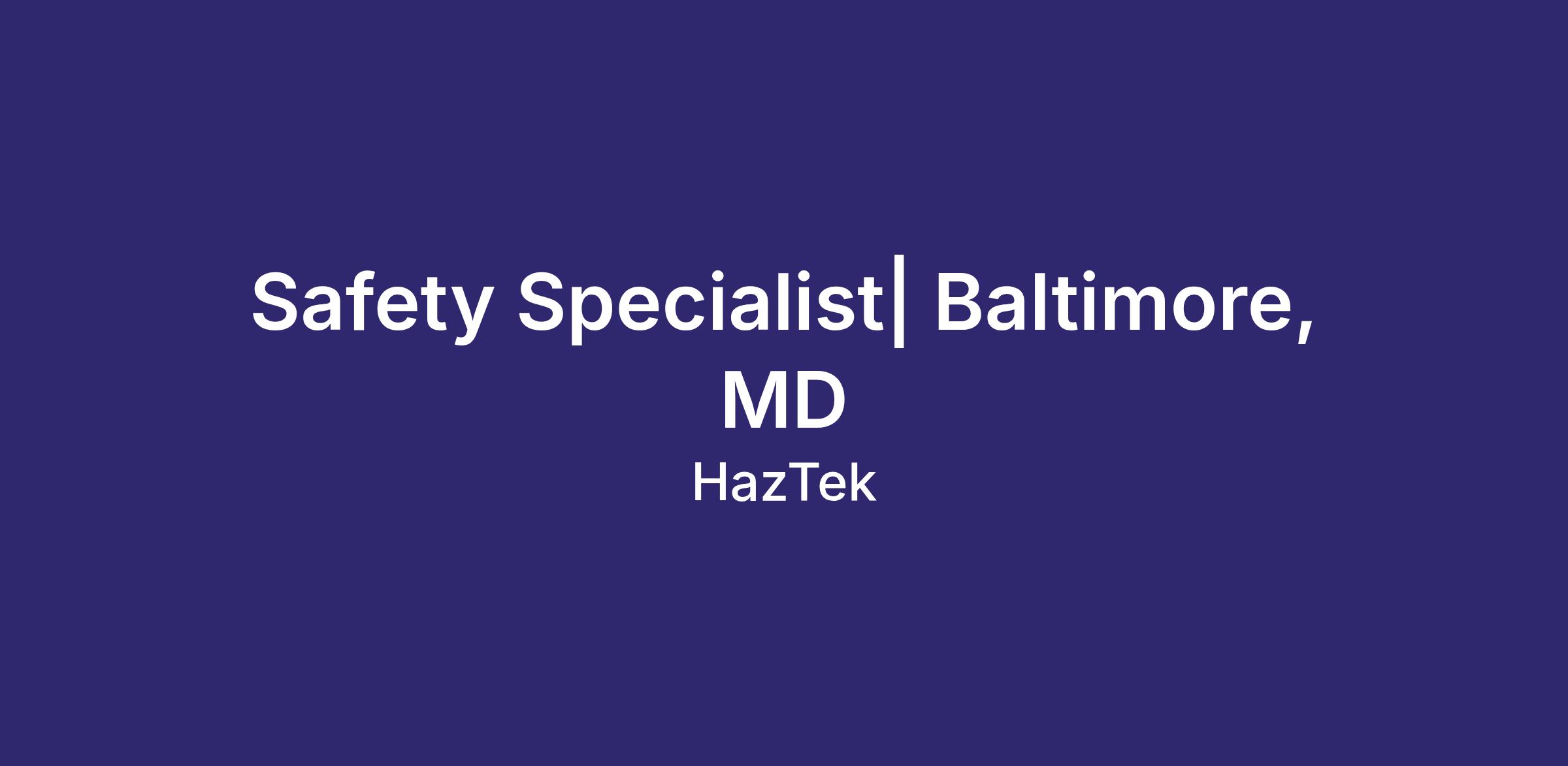 Safety Specialist| Baltimore, MD