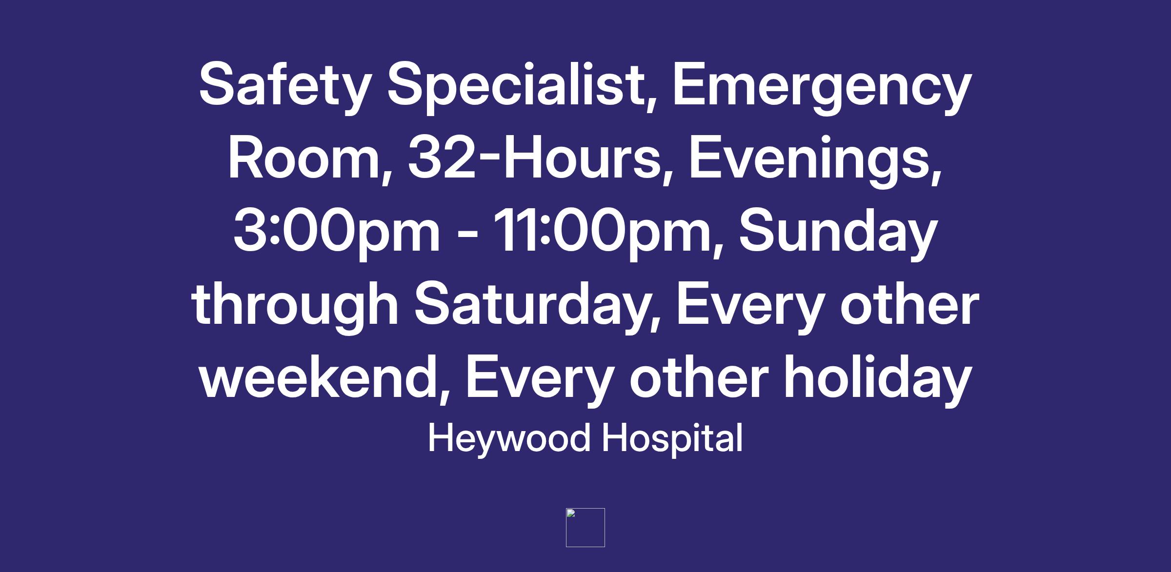 Hours: 32-Hours, Evenings, 3:00pm - 11:00pm, Sunday through Saturday, Every other weekend, Every other holiday