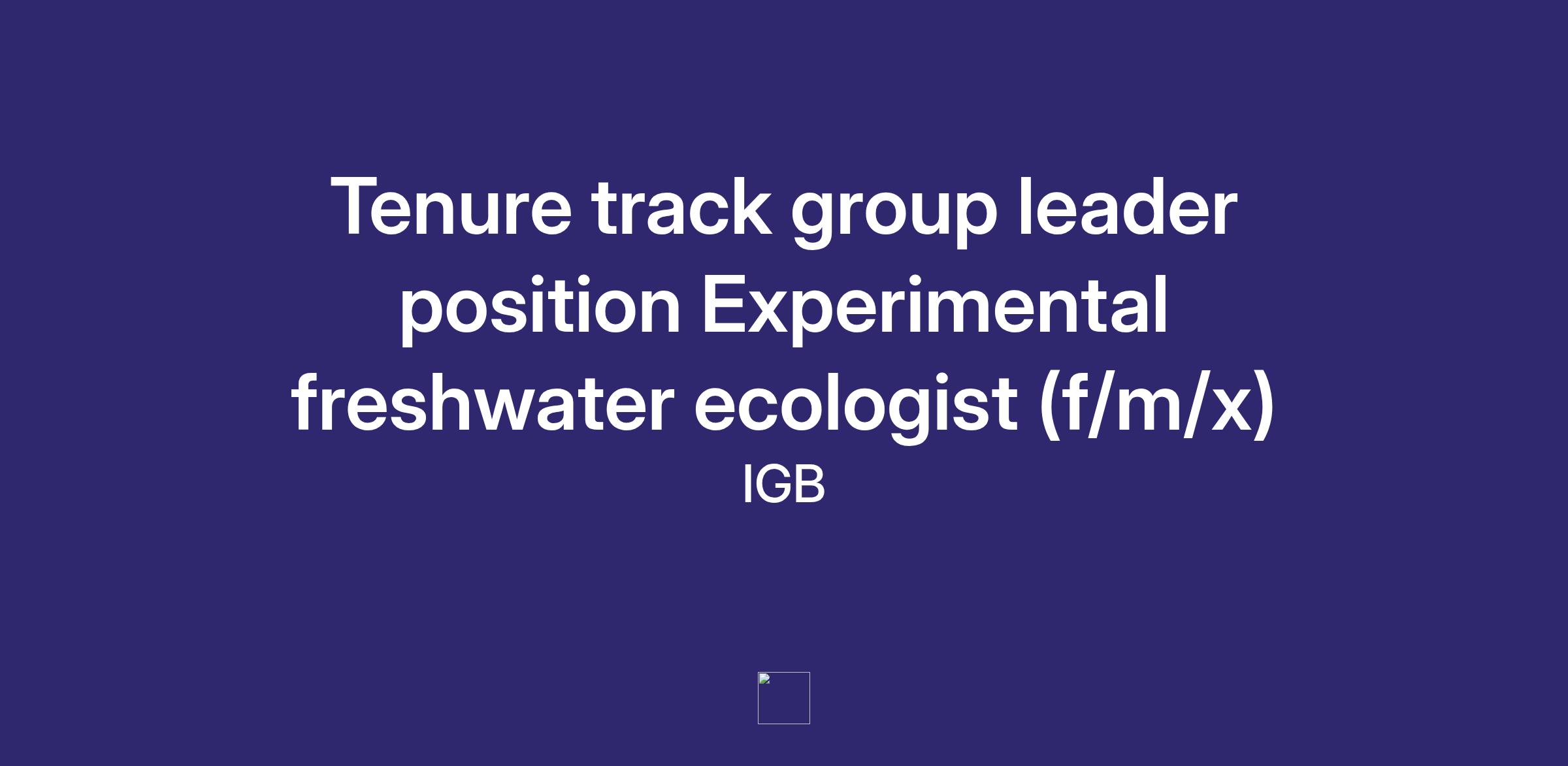 Tenure track group leader position Experimental freshwater ecologist (f/m/x)